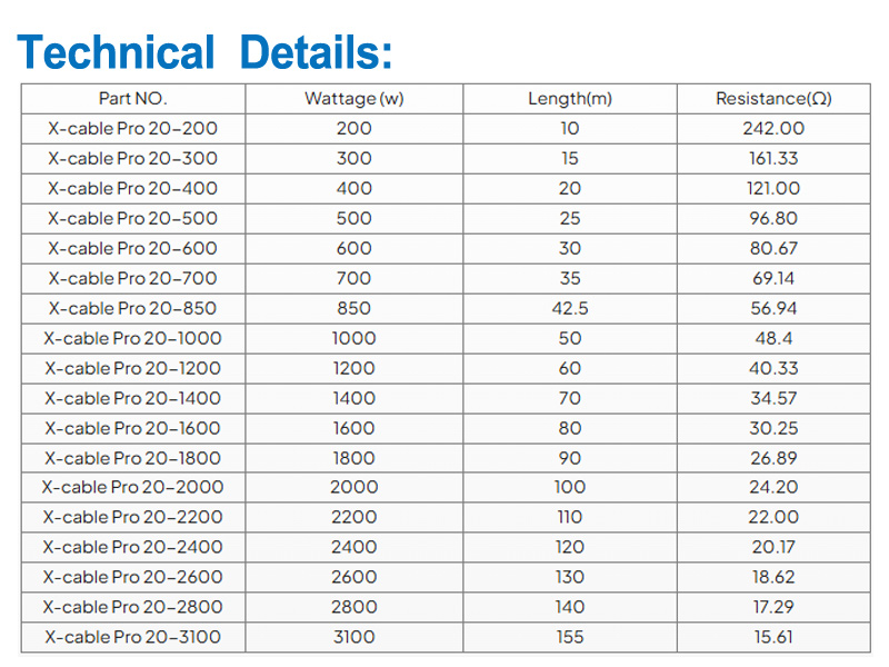 | Cable X Pro 20-1200 | 1200 | 60 | 40.33 |